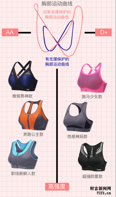 【胸部运动曲线】 没有支撑保护的胸部运动曲线 VS有支撑保护的胸部运动曲线 高强度 1、推倒男神款 2、奔跑公主款 3、职场新鲜人款 4、跑马少女款 5、性感辣妈款 6、超强防震款
